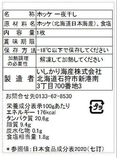 北海道石狩湾産の新鮮な真ホッケを丁寧に一夜干しにした逸品です。